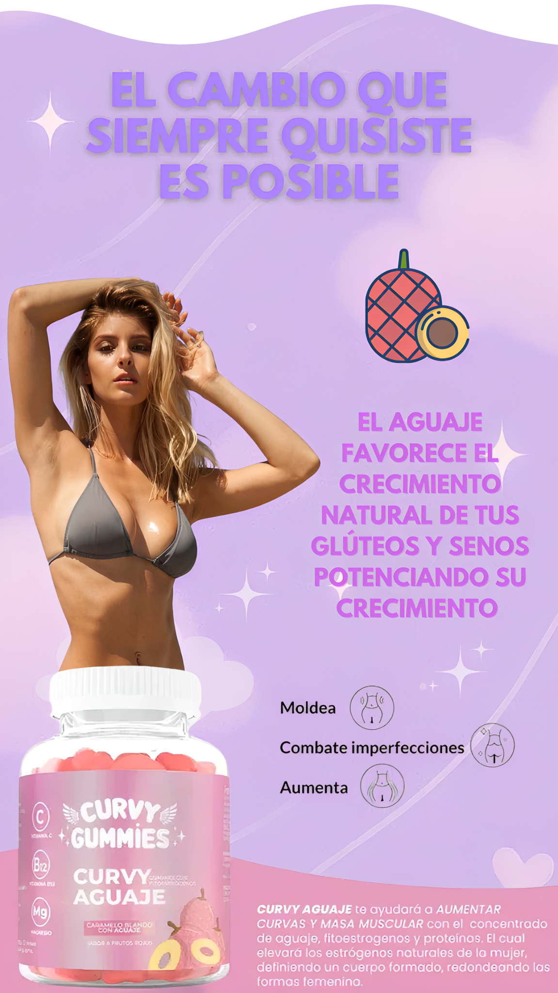 El aguaje es una fruta amazónica conocida como "la fruta de las curvas" por su alto contenido en fitoestrógenos naturales, que son compuestos vegetales similares al estrógeno femenino. Estos fitoestrógenos ayudan a estimular el desarrollo natural de las curvas femeninas, especialmente en caderas y senos, de manera segura y natural. Las mujeres de la Amazonía han consumido aguaje durante siglos por sus beneficios para la figura femenina.